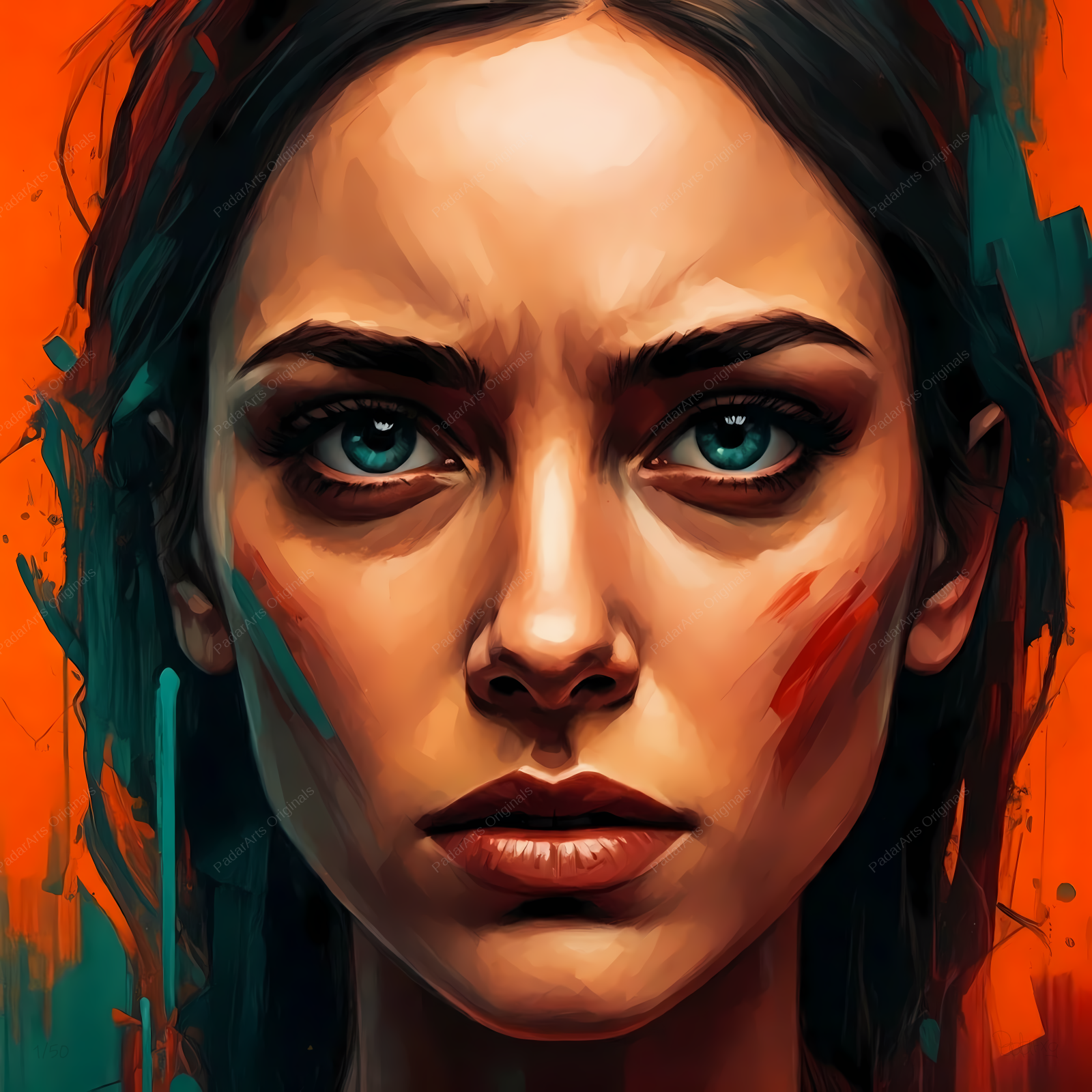 Gemini Warrior is a vibrant and expressive portrait of a woman’s face, painted with bold strokes of color. The artist’s use of strong colors creates a sense of energy and dynamism, while the expressive features of the face convey a sense of strength and determination. The artwork is a powerful and evocative image that celebrates the beauty and complexity of the human face, making a deep impression on the viewer.
